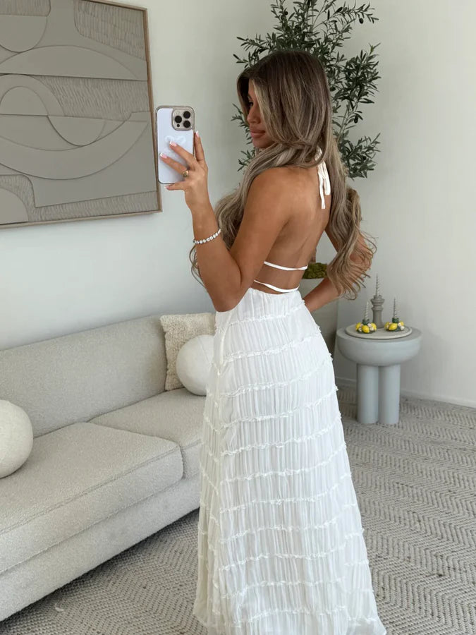 Ruffled Backless Halterneck Maxi Dress